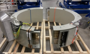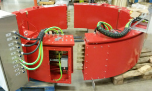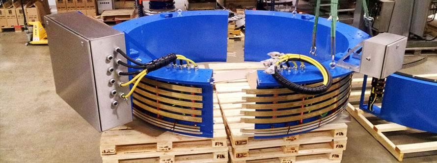分體式過孔滑環可以有幾米的直徑。滑環通常由2-4個部分組成,它們在現場連接在一起。孔徑較大,應用于散裝物料處理設備。