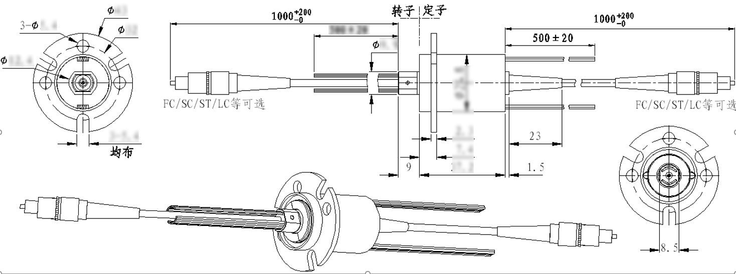 產(chǎn)品完全滿足360度無(wú)限制旋轉(zhuǎn)的光信號(hào)和電信號(hào)混合傳輸;