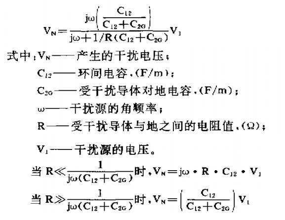 此種干擾是由于導線之間的電容及環與環之間的分布電容引起的,產生的靜電感應電壓與干擾源的頻率和上述兩種電容的大小有關。