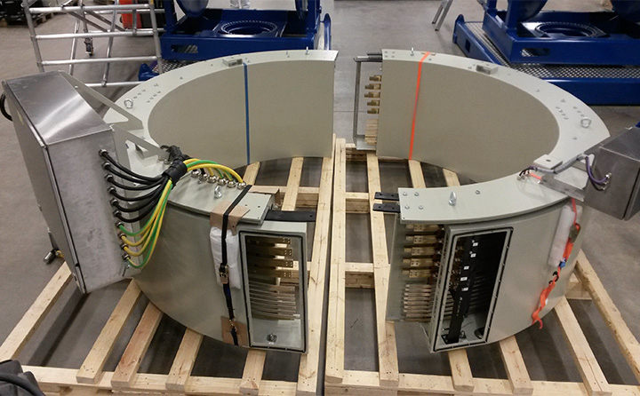 另一款我們又稱分體式盤式滑環,分體式盤式滑環用于空間受限的應用場合中,滑環不能安裝在單個部件的結構上,適用于在現有的結構之上添加滑環,改善電纜或控制信號的傳輸方式,分體式盤式滑環可用于大型的卷筒,電纜制造機,大型電機和不同的測試系統。