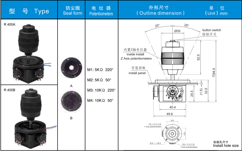 端子型號、引線長度、防塵蓋、開關、電位器型號規格、操縱手感輕或重